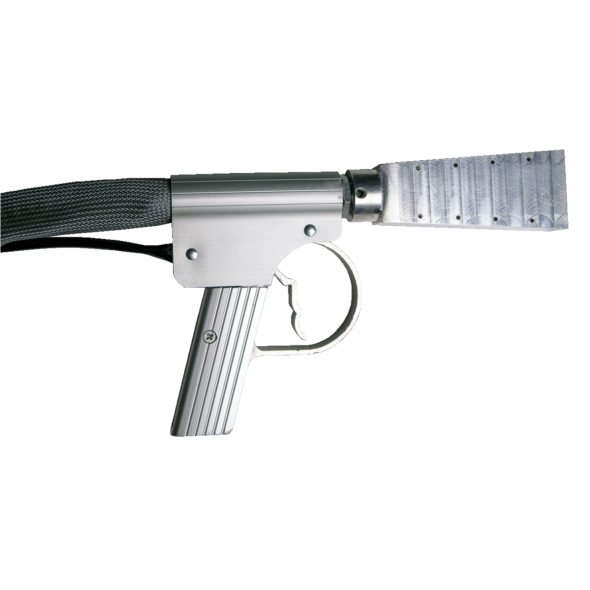 La forma particular de la boquilla, con ángulos específicamente diseñados, permite abrir el chorro, ampliando el área de acción sin perder efectividad, aumentando así la velocidad de tratamiento.