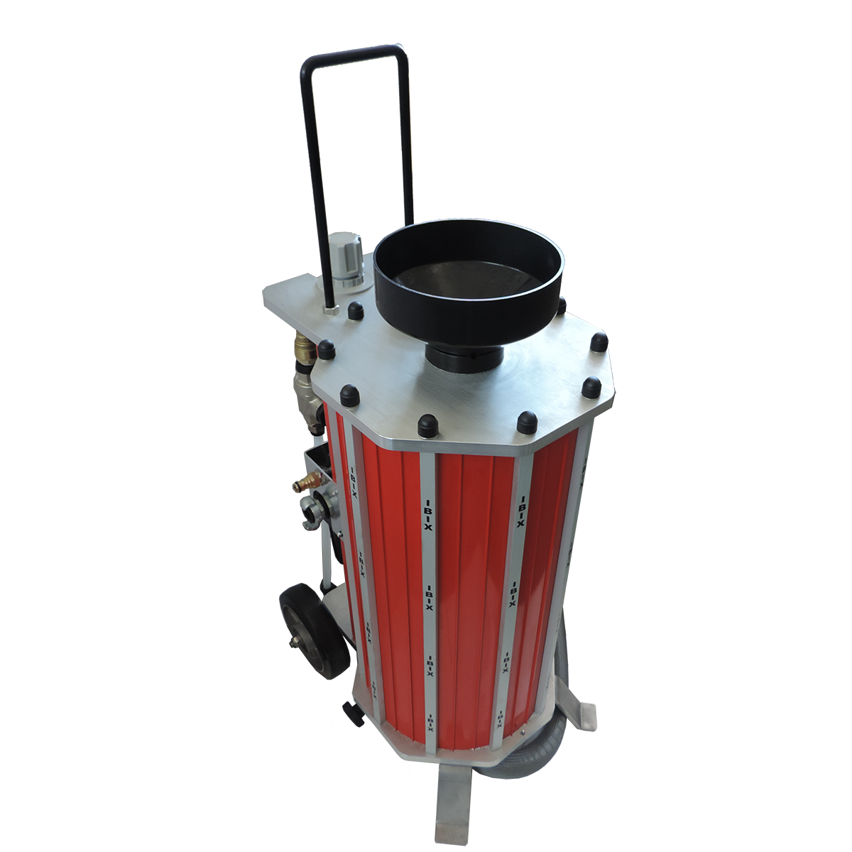 - La Tecnología Nano IBIX Easy-Test, permite vaciar completamente la máquina y evitar la contaminación en cambios inertes, también facilita la identificación del material abrasivo ideal para cualquier tipo de intervención;