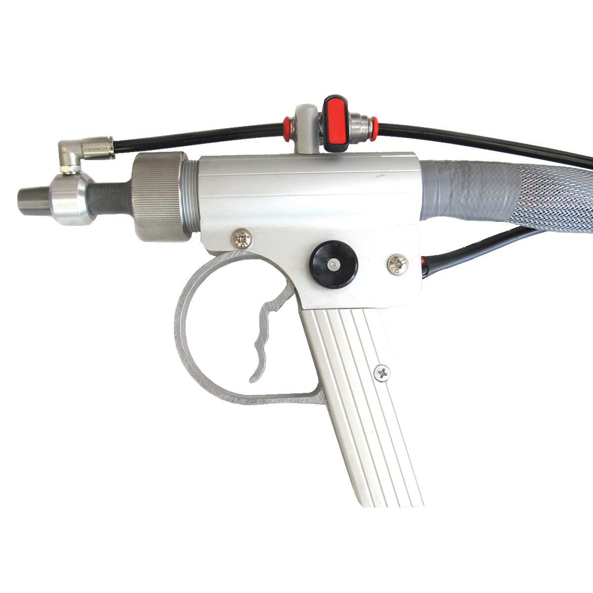 La combinación del efecto Venturi generado por la forma especial del cono de salida y el movimiento giratorio helicoidal reduce significativamente la necesidad de aire comprimido y aumenta el área de contacto.